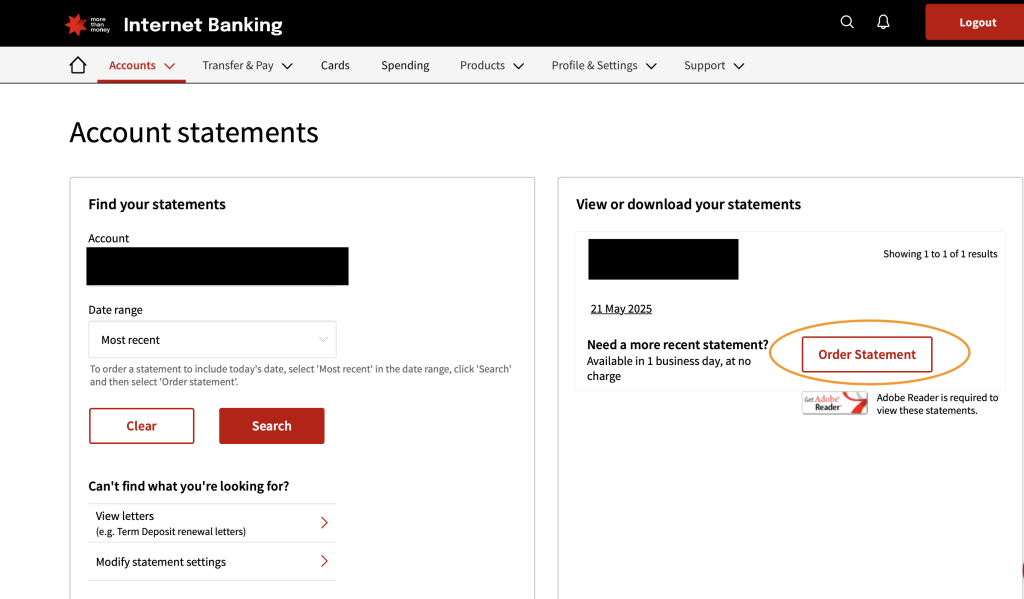 - 「Find your statements」セクションで、口座を選択