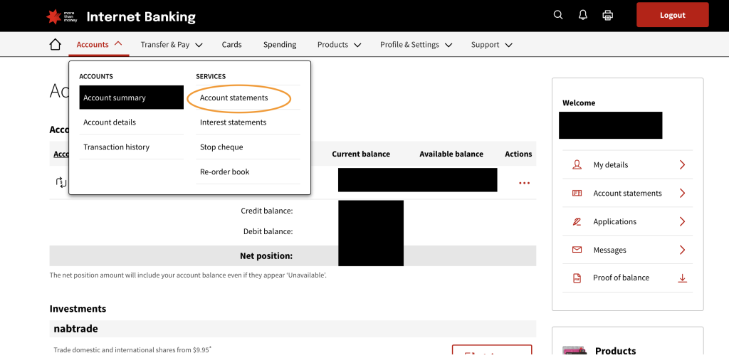 NAB銀行では、とっても簡単に・無料で残高証明が発行できます!